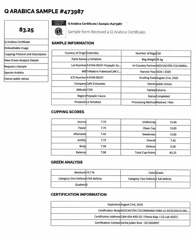 ■Qグレード認証で、83.25点を取っており、スペシャルティコーヒーと言える逸品です。